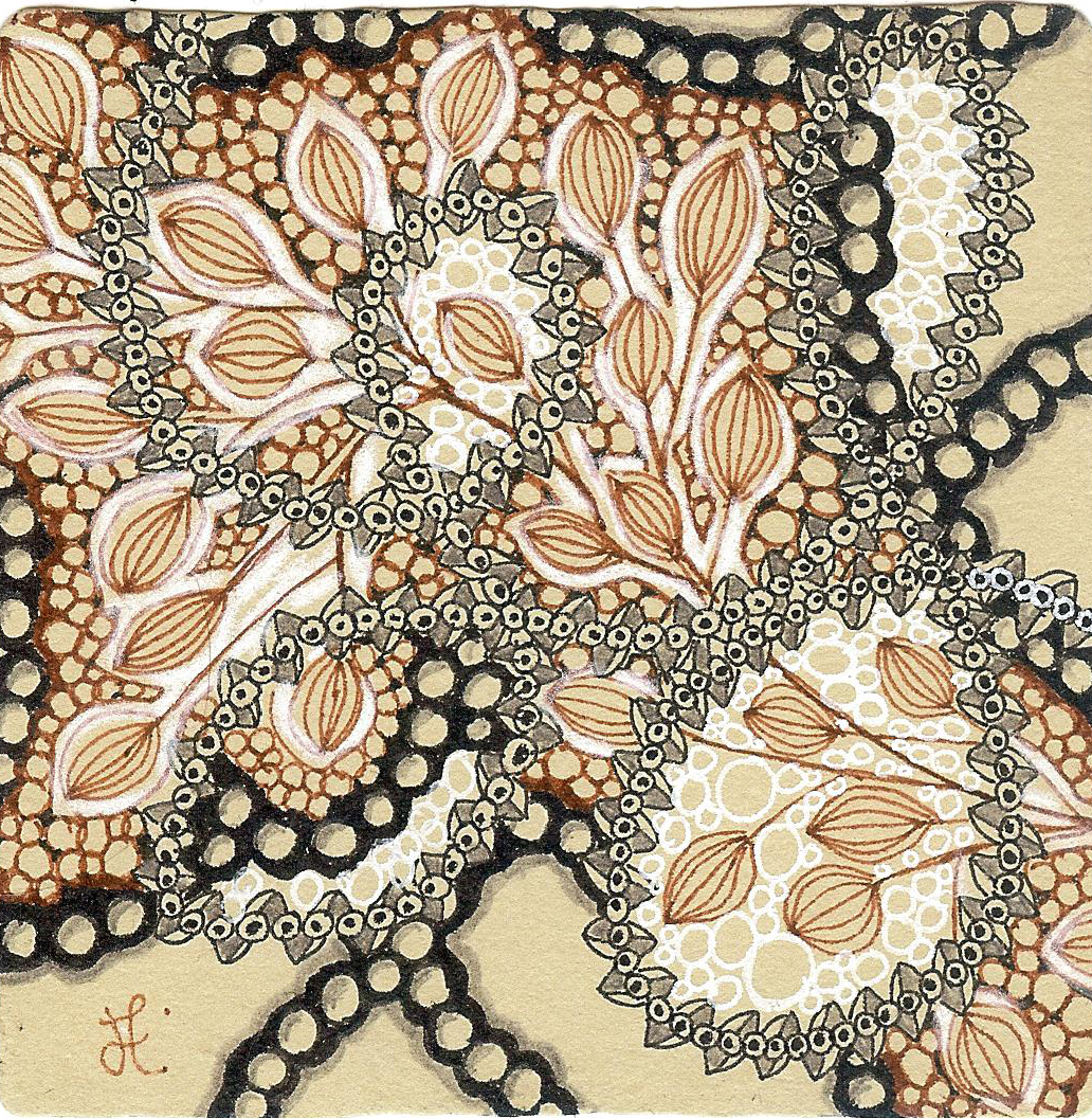 Es ist zumindest meine Hoffnung, dass es nie zu spät ist, denn ich bin erst jetzt mit der Diva Challenge von letzter Woche fertig. Es ging darum, die zwei Tangles Artoo und Boo*kee (von Laura Harms) zu benutzen. Gerne, das sind schöne Tangles. Ich habe einfach angefangen, ohne Plan und wusste nie, was ich als Nächstes mache. Es hat ziemlich lange gedauert aber – mir gefällt das Ergebnis! Was sagt ihr dazu? Ach ja, darum geht es ja bei der Zentangle-Methode!