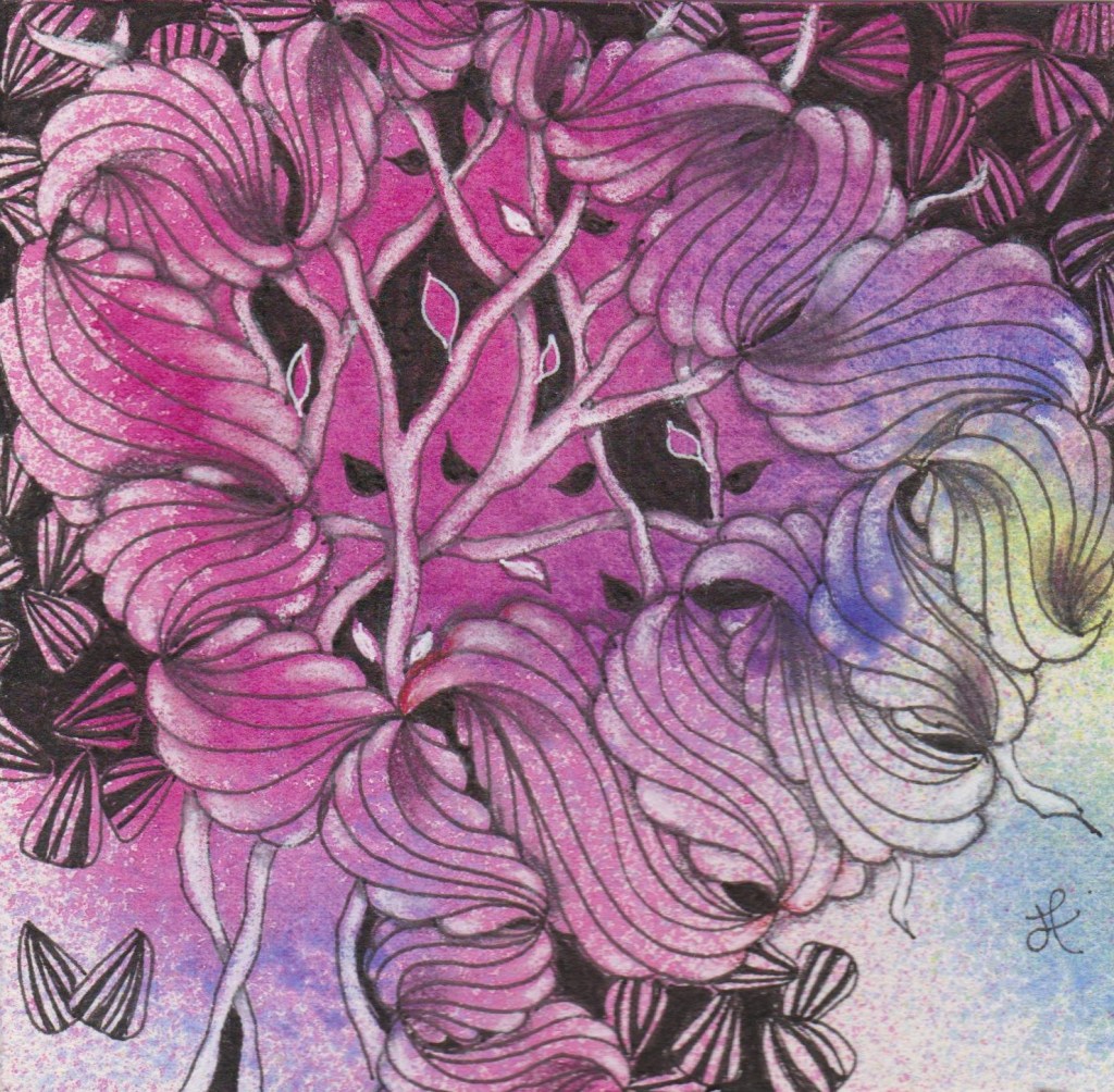 Was kann man alles mit Farbe machen? Jede Menge! Ich entdecke immer wieder neue Techniken, hauptsächlich auf den Blogs von anderen Tangler. Es macht mir so viel Spass, und will ich über ein paar Posts euch mitteilen, was ich letztens so alles gemacht habe. Als Erstes wurde ich von Annette Plaga-Lodde inspiriert, meine eigene Acryll-Sprühfarben…