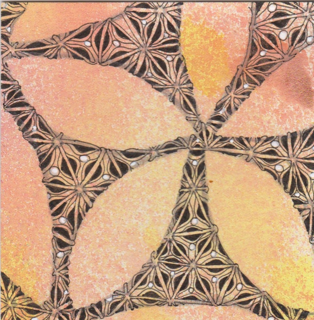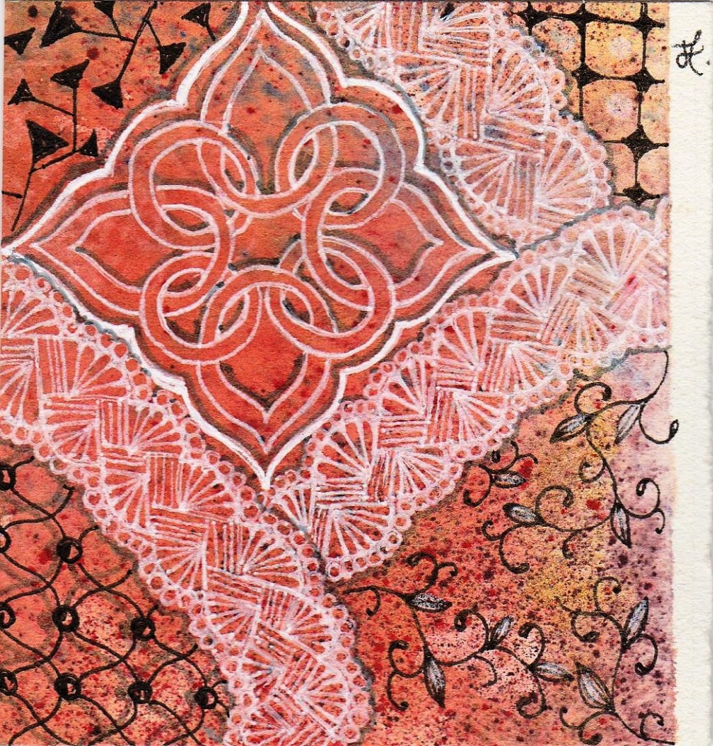 So….suddenly I had a tile for the Diva Challenge. I read the challenge and saw a few tiles and thought it sounded like fun. I decided to take just a few minutes to see if I could come up with an asymmetrical fragment for my pattern Geschluckt, which I like to use as a reticula.…